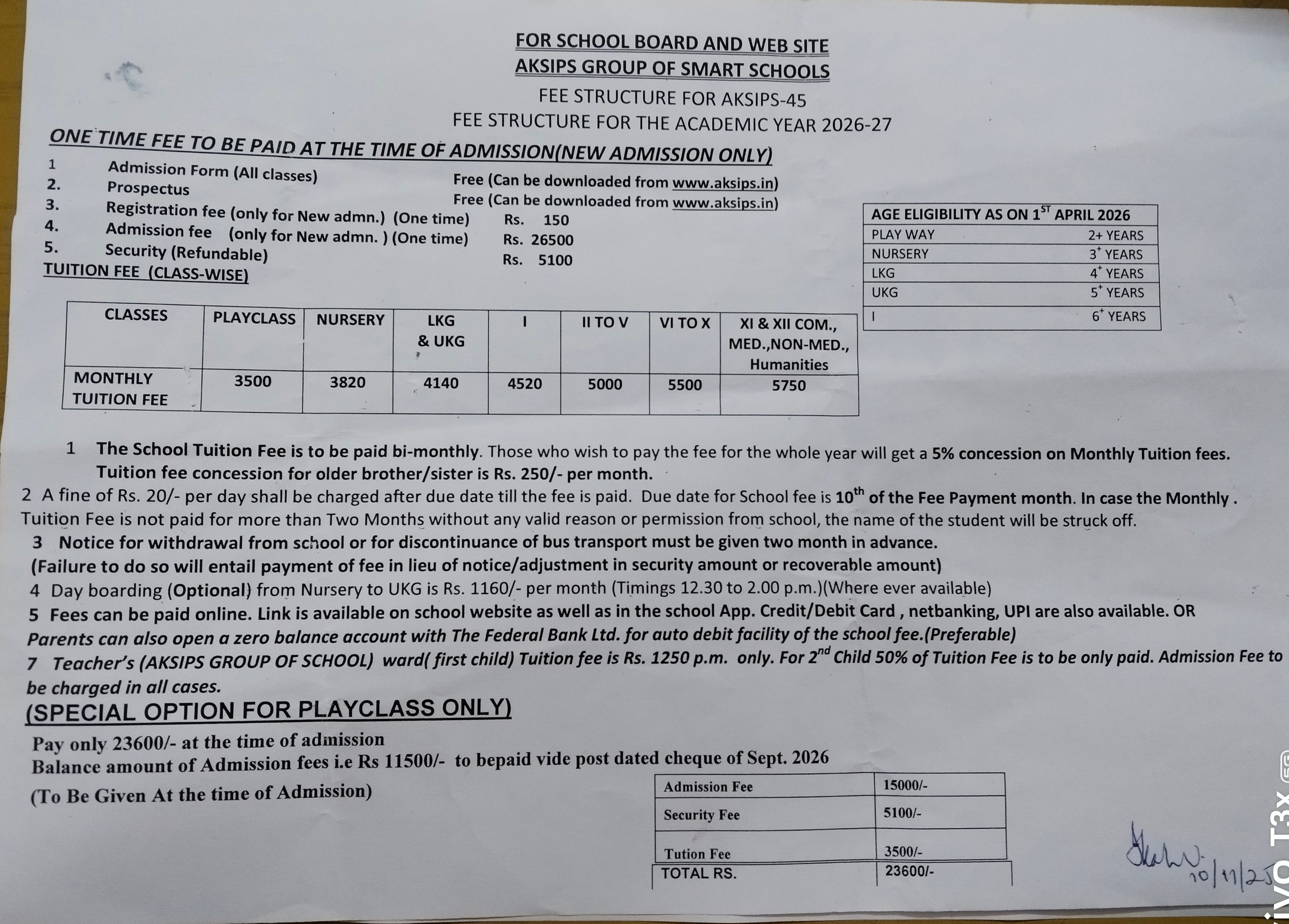 FEE STRUCTURE 2026-27