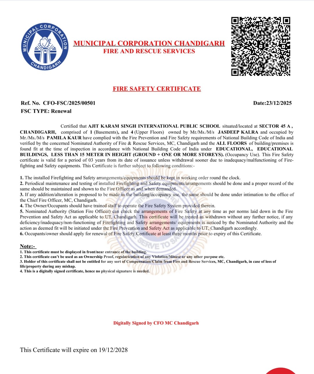 Fire Safety Certificate